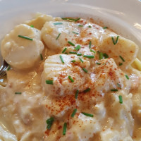 “ Google can't seem to get this location right since Harry's moved. So head north out of town past Okemo to where Rt 100N separates from Rt103. Take that right onto Rt100N and Harry's will be right there on the right. Park down in the lower lot if the lot next to the restaurant looks full. It's a nice new location - it will be great to see the place develop into something that feels less borrowed and more "Harry's". Service is perfectly fine and attentive, if a little rushed. The food is as it ever was, mostly delicious and tongue tingling. You can't go wrong with their sauces, dressings, jerk, and chutney's. A visit to Harry's decades ago woke me up to flavors that I never had imaged could exist and I've been coming back ever since. On my last visit I had the jerk scallops. The huge portion of scallops was perfectly cooked and packed with flavor, on top of vermicelli (which for me did nothing for the dish). They sided it with with a too salty seasonal salad (croutons, tomatoes, mozzarella, pesto) that unfortunately was a huge disappointment as the flavors muddled and clashed horribly with the jerk seasonings. Mom had a Sole Meuniere-ish dish with a lemon sauce that was terrific. And then she had flan, and I had key lime pie. Yummy. ”